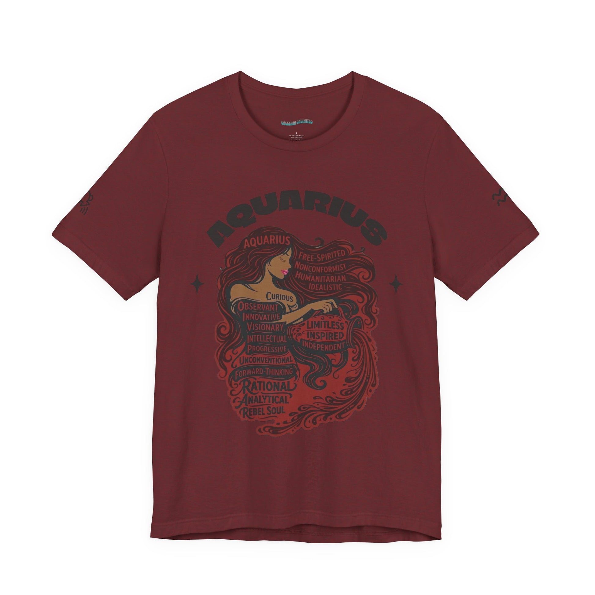 Aquarius| Word Art Graphic Tee (garnet) -- "Aquarius" Definition on Back