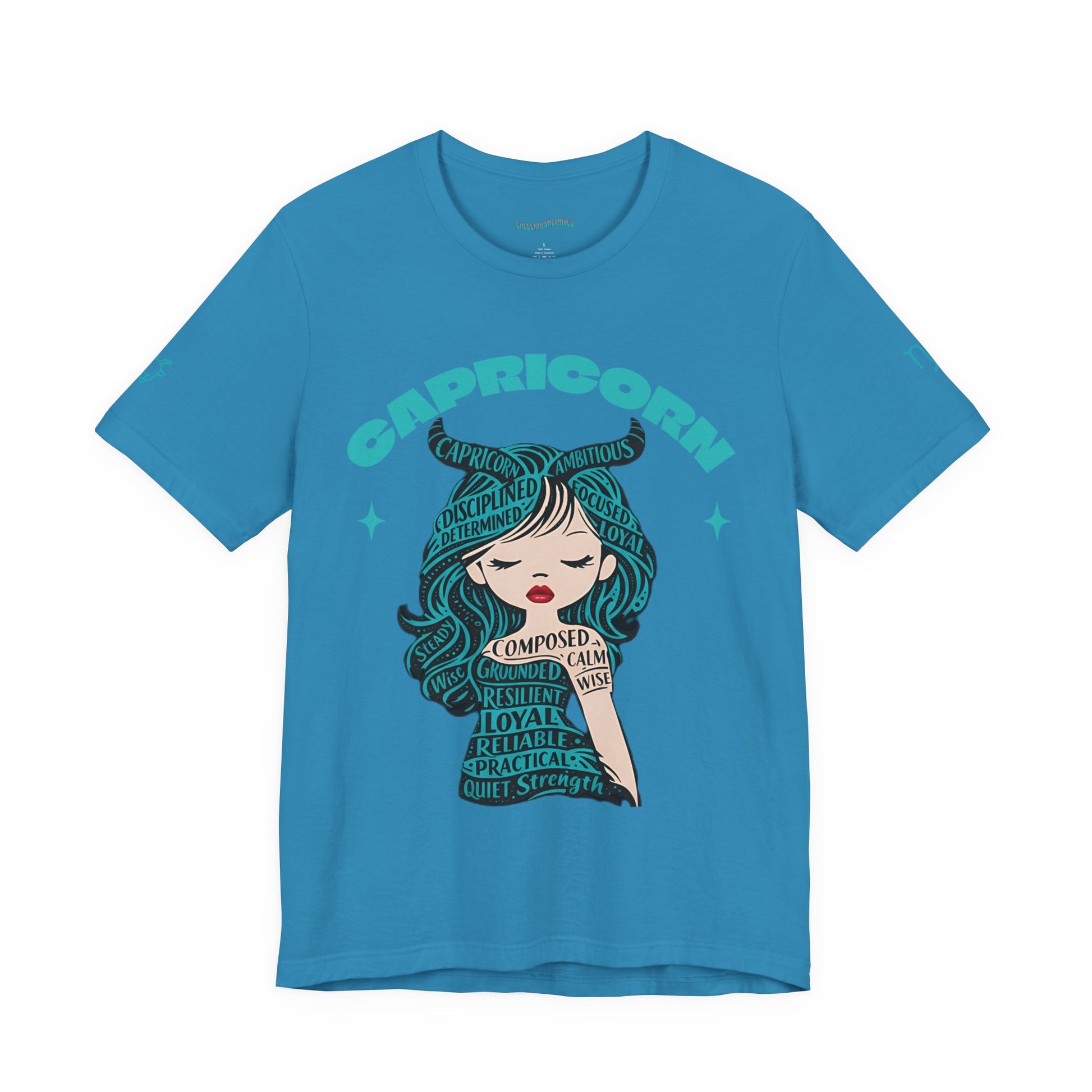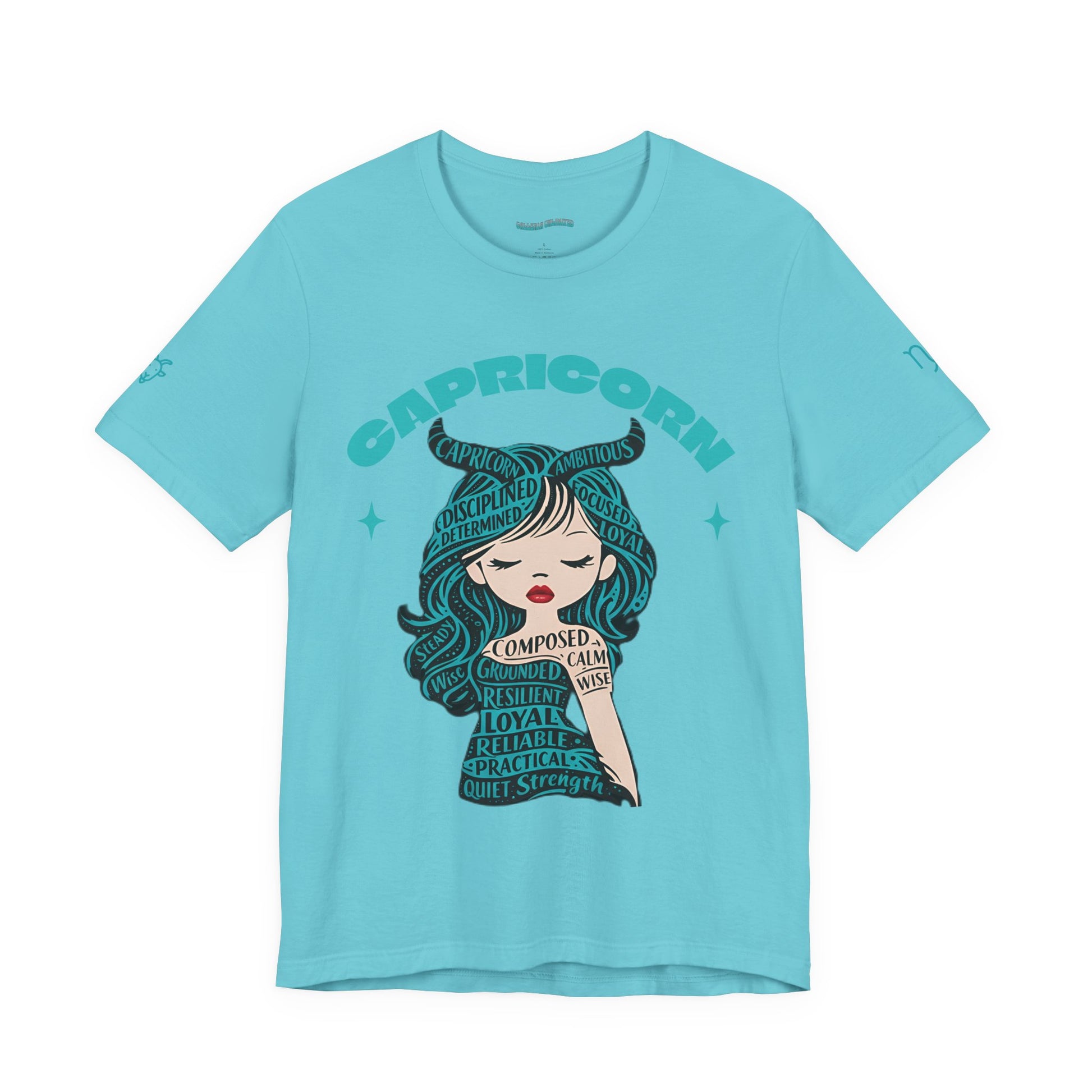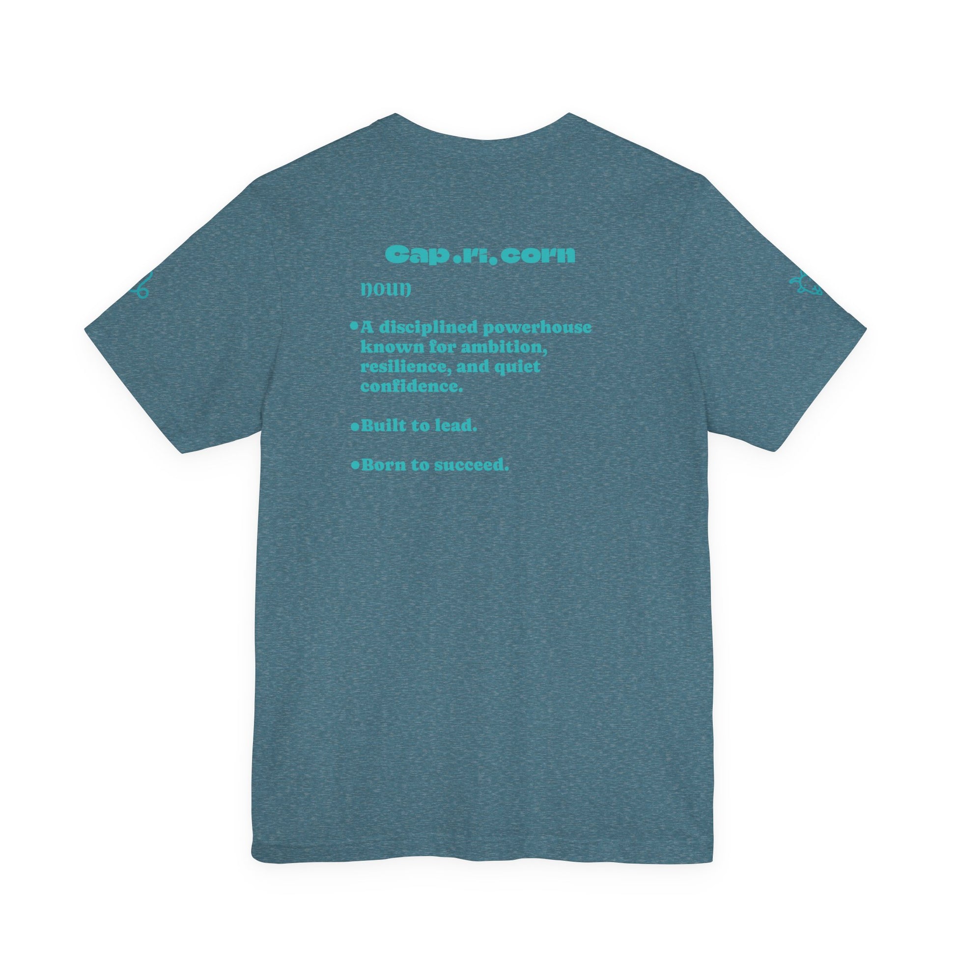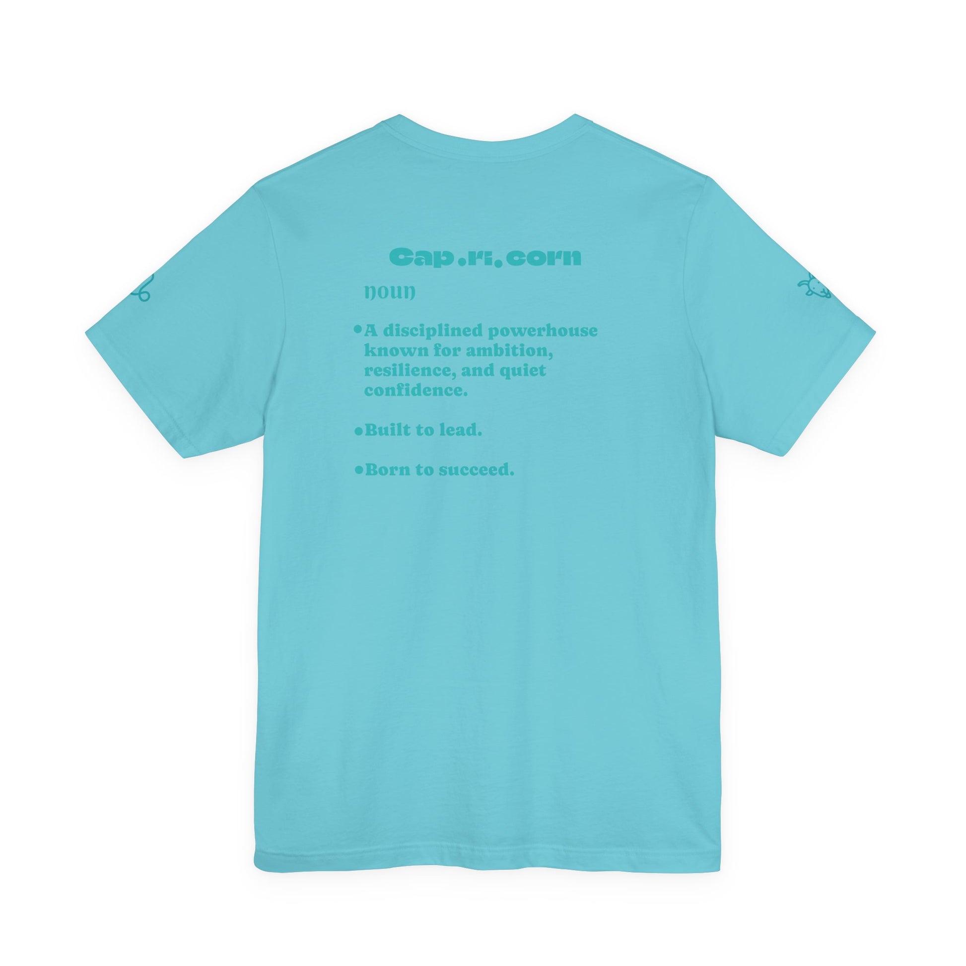 Capricorn | Word Art Graphic Tee2 (turquoise)--"Capricorn" Definition on Back
