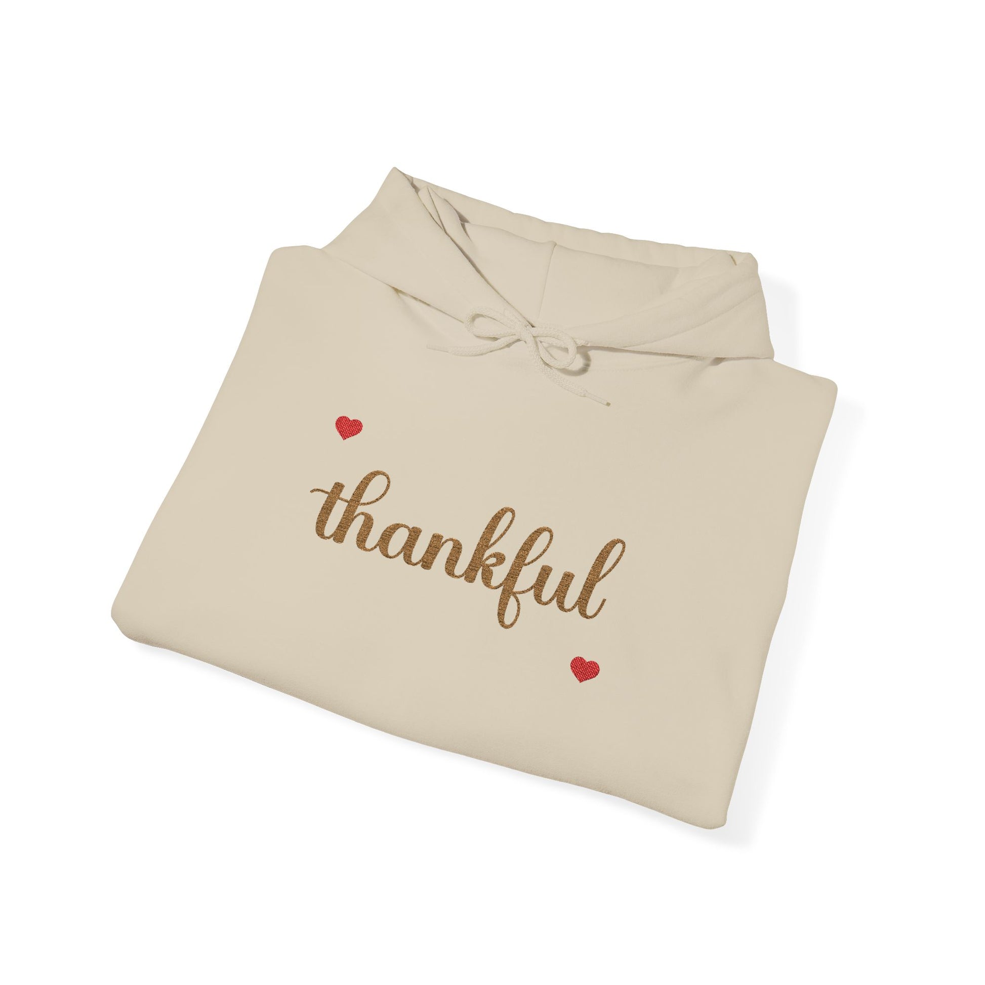 The Thankful Edit1 |Gold Embroidered Thankful Hoodie, red hearts (multiple colors)